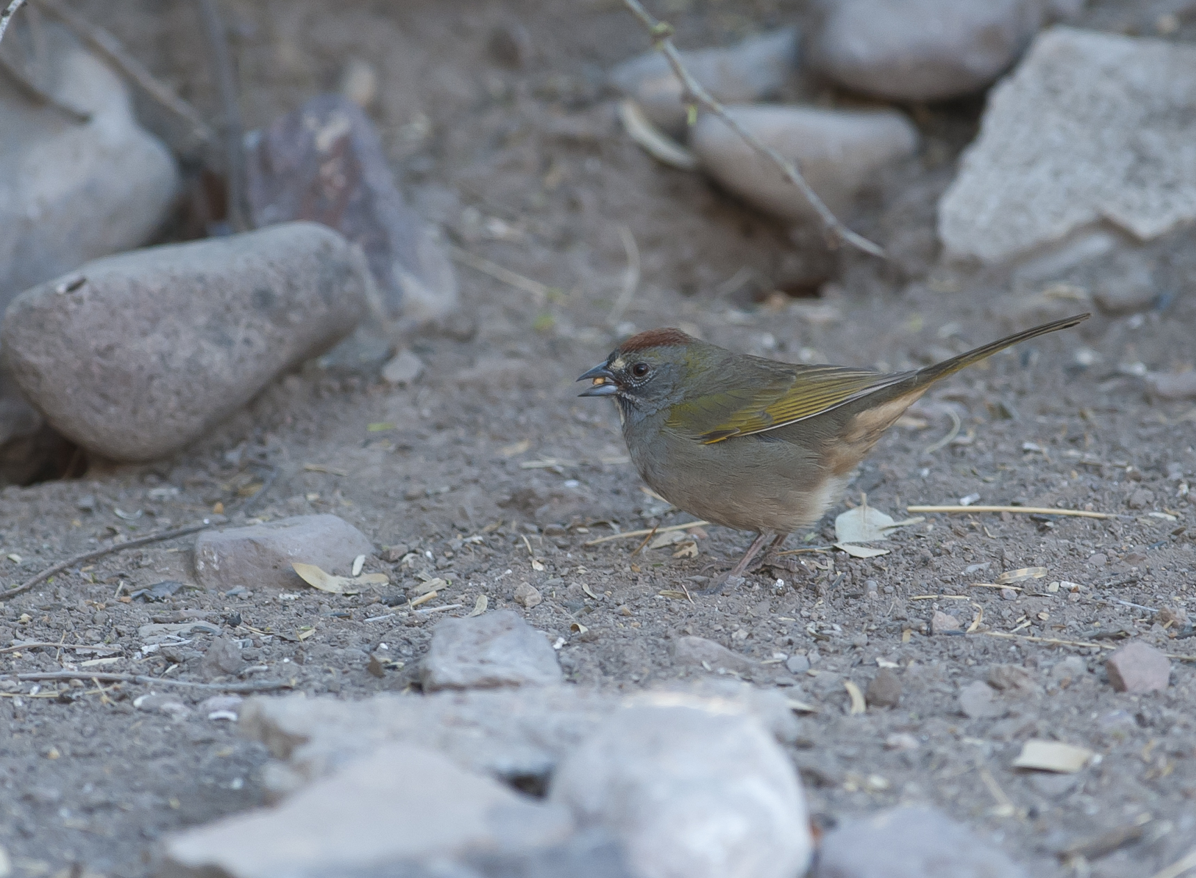 Green Tailed Towhee attracted to many of the feeding stations around the ranch.