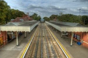 Barkingside Tube station at dusk.