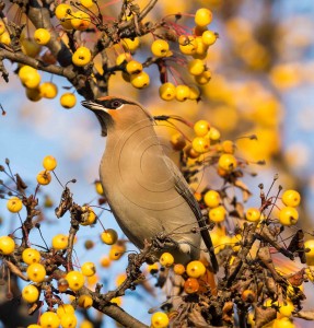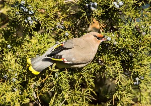 BOHEMIAN WAXWING FEASTING ON JUNIPER BERRIES