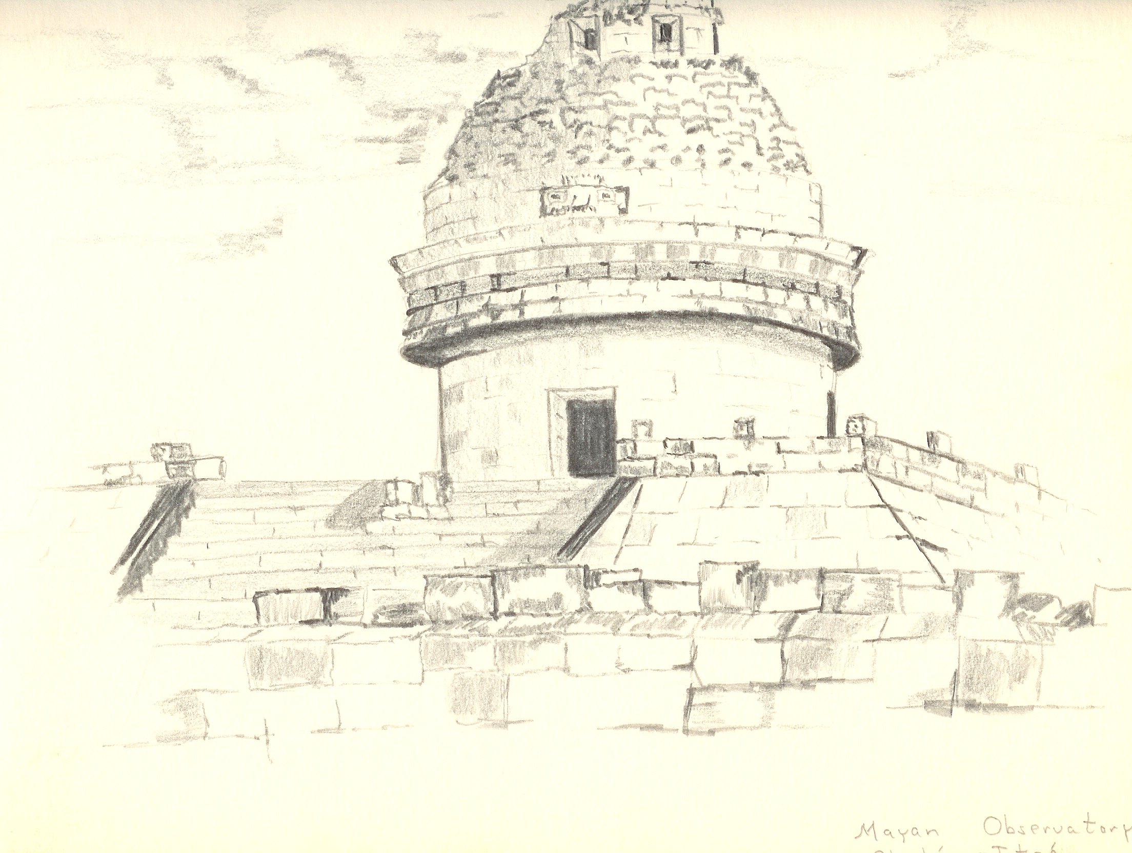 Above is a sketch I made of a Mayan observatory back in the 70’s during a visit to the Yucatan peninsula. I think you can see why I decided to concentrate on photography.